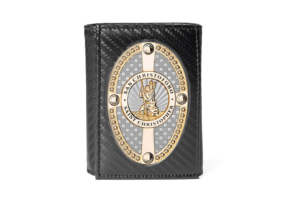 The new Compact leather case made of cowhide and a carbon coating pattern in black with press-stud fastener and aluminium protective case for 7 credit cards.