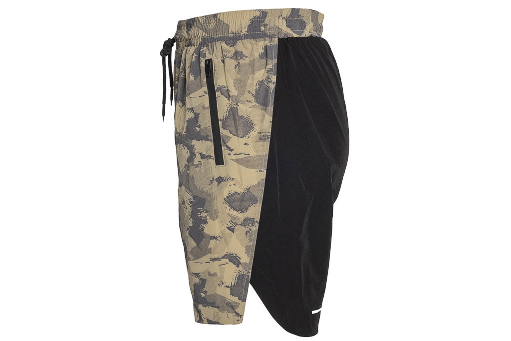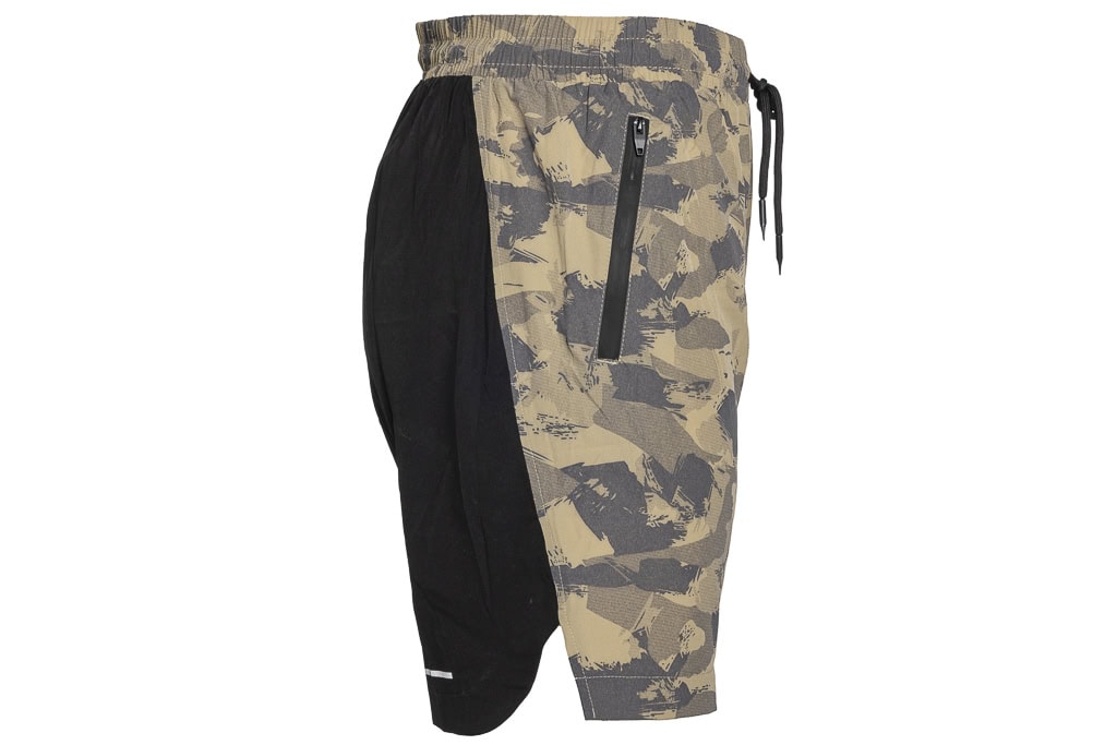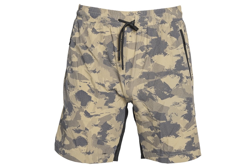 These camouflage-coloured shorts made of hardwearing polyester offer a perfect combination of comfort and functionality. The elasticated waistband with integrated drawstring enables an adjustable fit and provides additional support. Two front zip pockets offer secure storage space for personal items. With their modern, practical design, these shorts are ideal for sporting activities, outdoor adventures or everyday wear.
