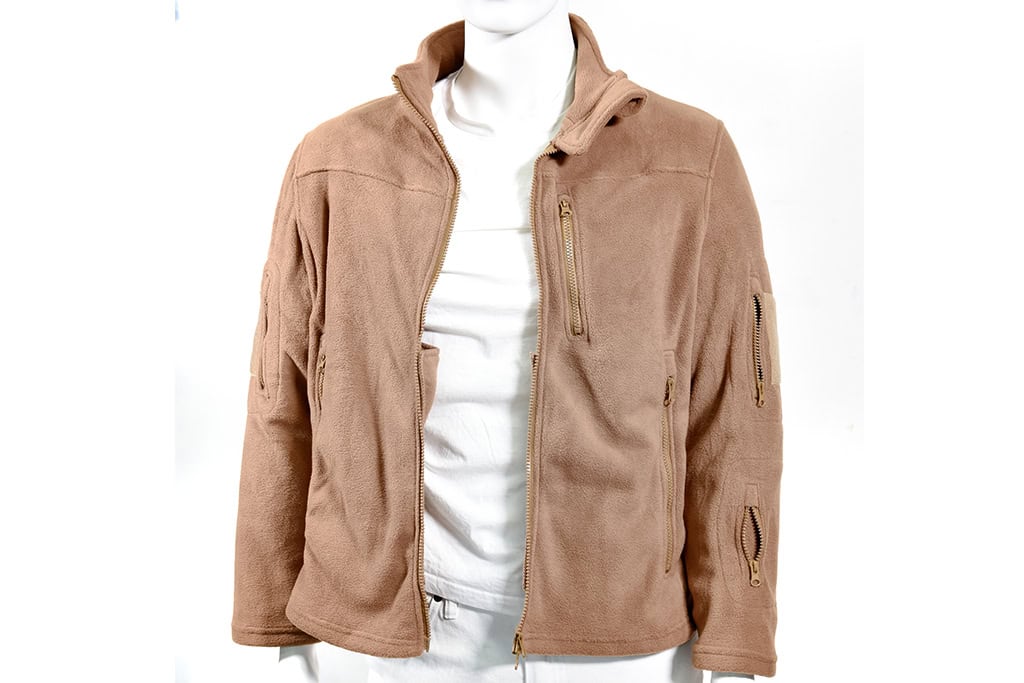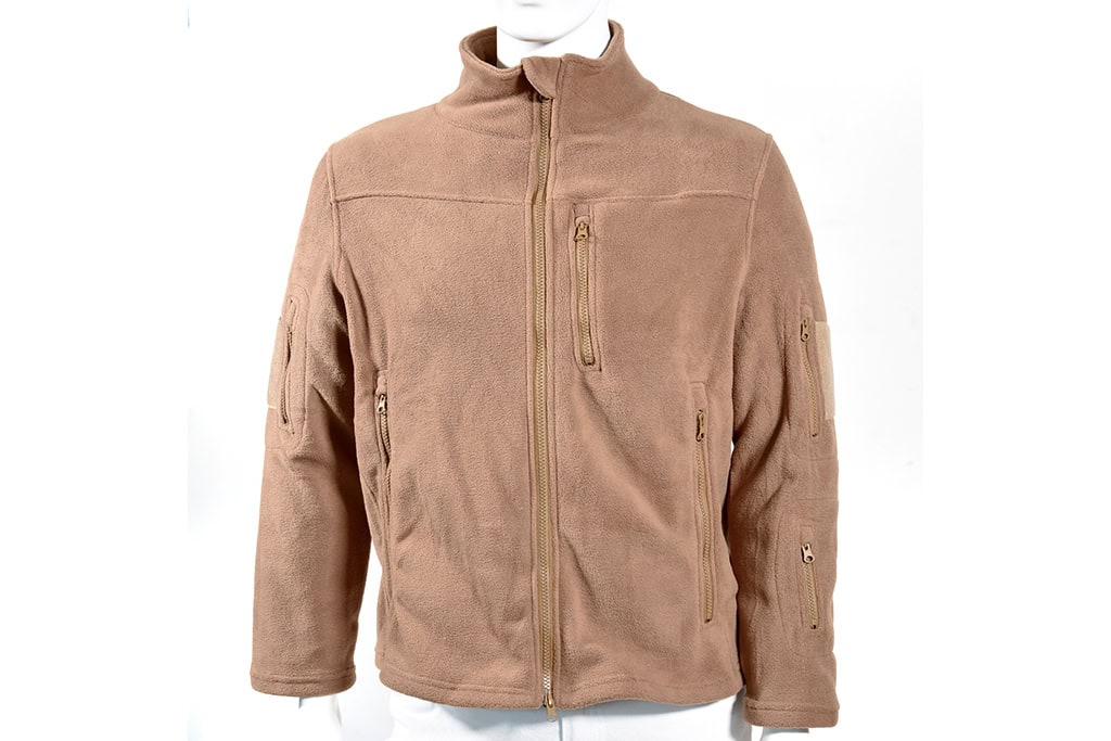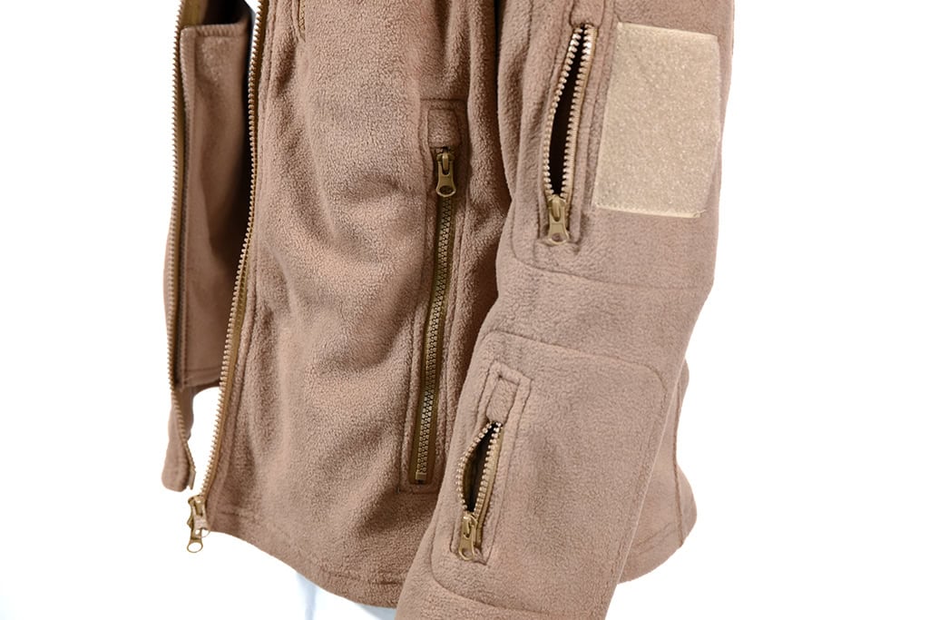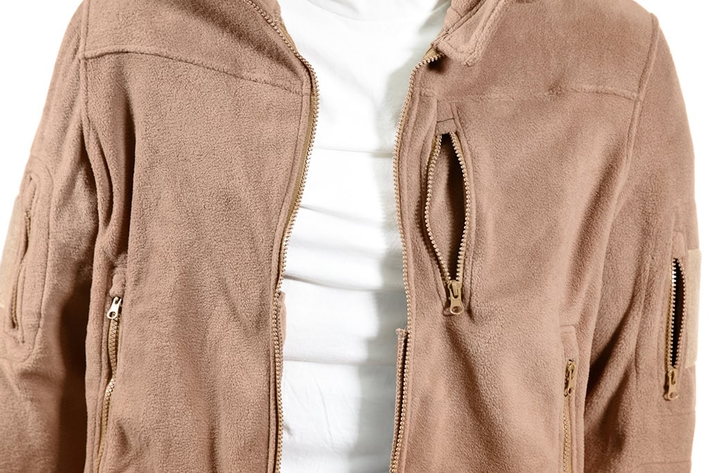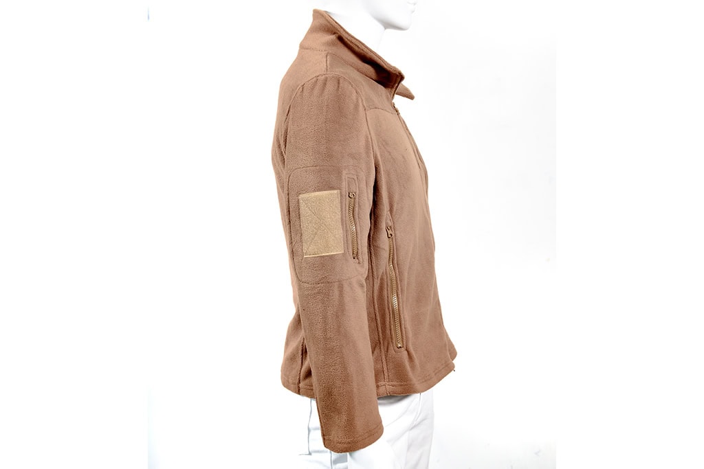 This thermal fleece windbreaker is made from breathable and lightweight polyester. The full-length double zip design keeps your neck warm and the multi-pocket design meets all your needs. With 6 pockets: 1 zipped chest pocket, 3 zipped sleeve pockets and 2 zipped side pockets, it offers plenty of space. The sleeves have 9cm x 7cm soft Velcro on both sides for attaching various patches.