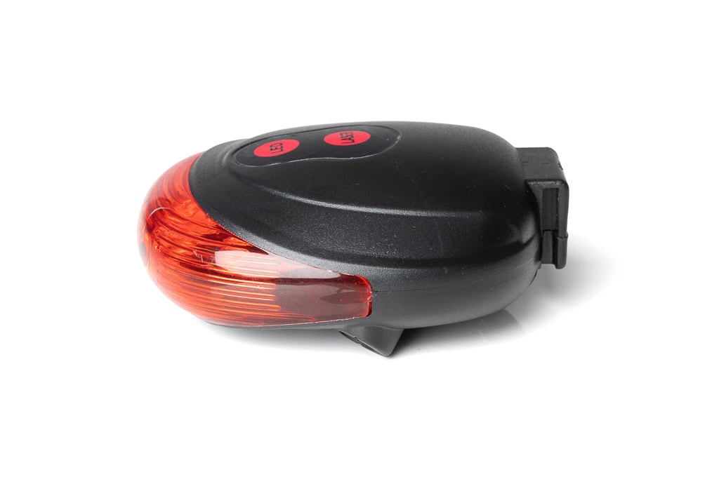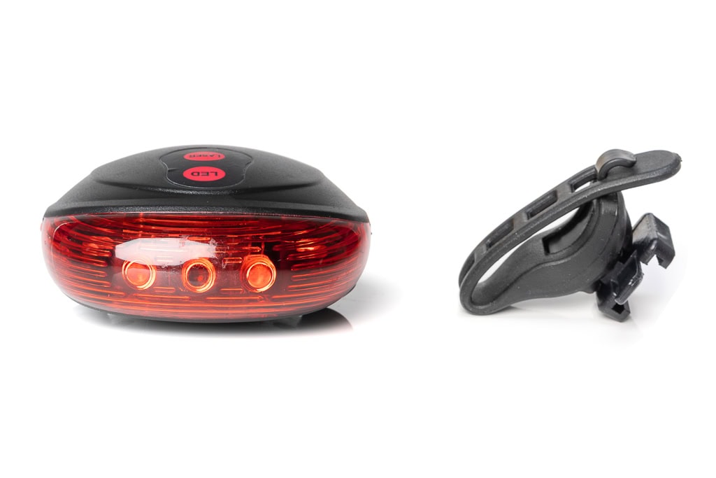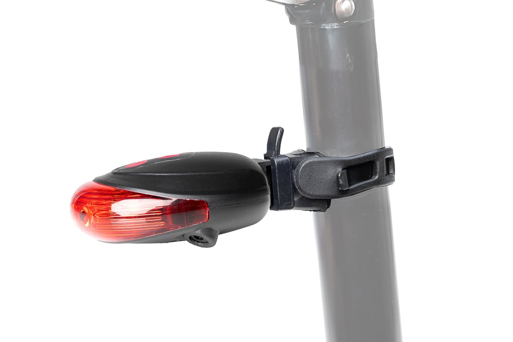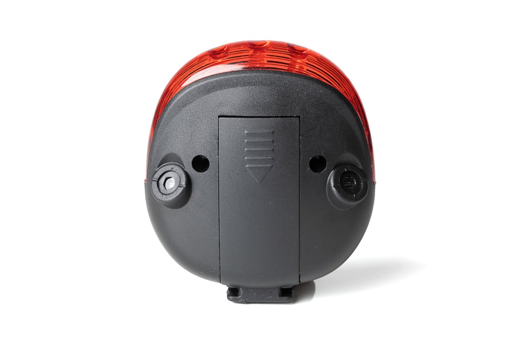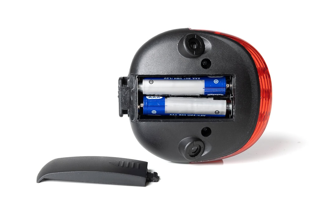 The rear light is powered by two AAA batteries, which are not included in the scope of delivery. The bicycle rear light can be attached to the seat post, struts and frame without tools using the quick fastening. – With universal holder – bright and battery-saving 5 LED diodes.