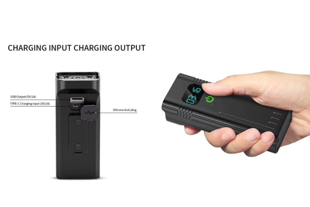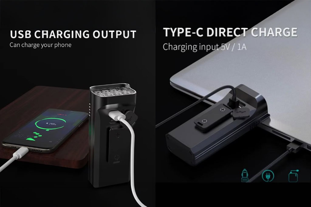 - With its 5000 mAh battery, the lamp also serves as a power bank so you can charge your mobile phone in an emergency.