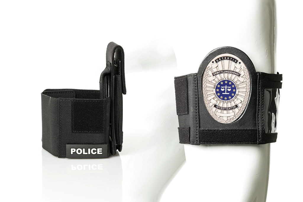 The “Mobile Phone Case” is made from a stable Cordura material exterior equipped with pen holder, with a push button as well as a safety Velcro at the back. This case can be conveniently mounted on the armband on the badge with push button and Velcro. Thus, the badge holder is no longer visible. Suitable for civil use, leisure, for example, jogging etc. The Mobile Phone Case can be removed easily from the armband and used as a strap.
