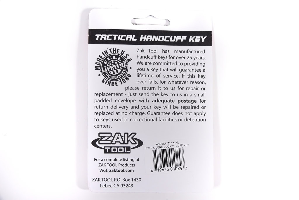 Toutes les clés sont fabriquées en acier inoxydable traité thermiquement et conçues pour une utilisation indéfinie. Grâce à des matériaux de haute qualité et à une fabrication experte, nous pouvons vous offrir une garantie de durée de vie indéfinie. Compatible avec la plupart des versions standard de menottes.