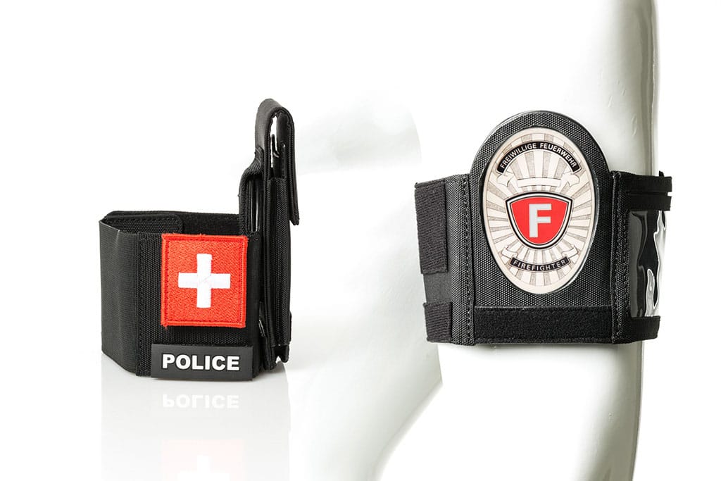 Ce brassard élastique peut être réglé en tout confort par le porteur. Le brassard est équipé d’une bande autogrippante spéciale. Ce brassard multifonctions est équipée d’une fenêtre transparente pour carte d’identité et d’un support de badge. Le badge peut être retiré facilement du support. Diverses bandes autogrippantes sont placées sur le brassard pour appliquer des inscriptions. Le patch en caoutchouc avec l’inscription « POLICE » ou « SECURITY » est compris dans le prix et peut être appliqué avec la bande autogrippante. Le patch en tissu drapeau (Suisse) peut être acheté en tant qu’accessoires tout comme un patch en caoutchouc avec Switzerland. Ils possèdent également une bande autogrippante et peuvent être appliqués sur le brassard.