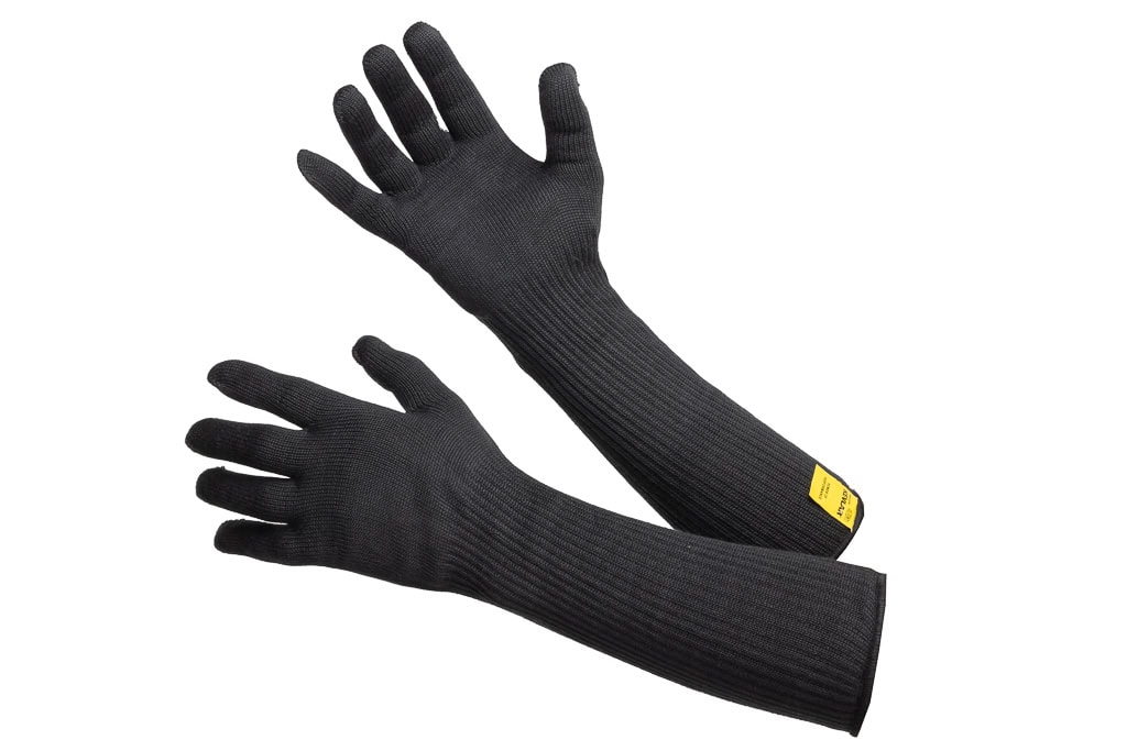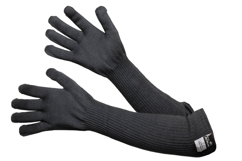 Questo guanto antitaglio in maglia di Kevlar è realizzato al 100% in Kevlar e offre protezione fino ai gomiti. Il guanto traspirante con il filato in Kevlar ad alta resistenza è ideale per la lavorazione di pezzi taglienti, coltelli, vetri rotti, lamiere, trucioli metallici. Molto spesso utilizzato anche come guanto di difesa nel settore della sicurezza, può essere utilizzato anche come sottoguanto. Inoltre, le fibre di DuPontTM sono rivoluzionari tessuti resistenti al calore e alla fiamma che vengono incorporati in questi guanti con manicotto.