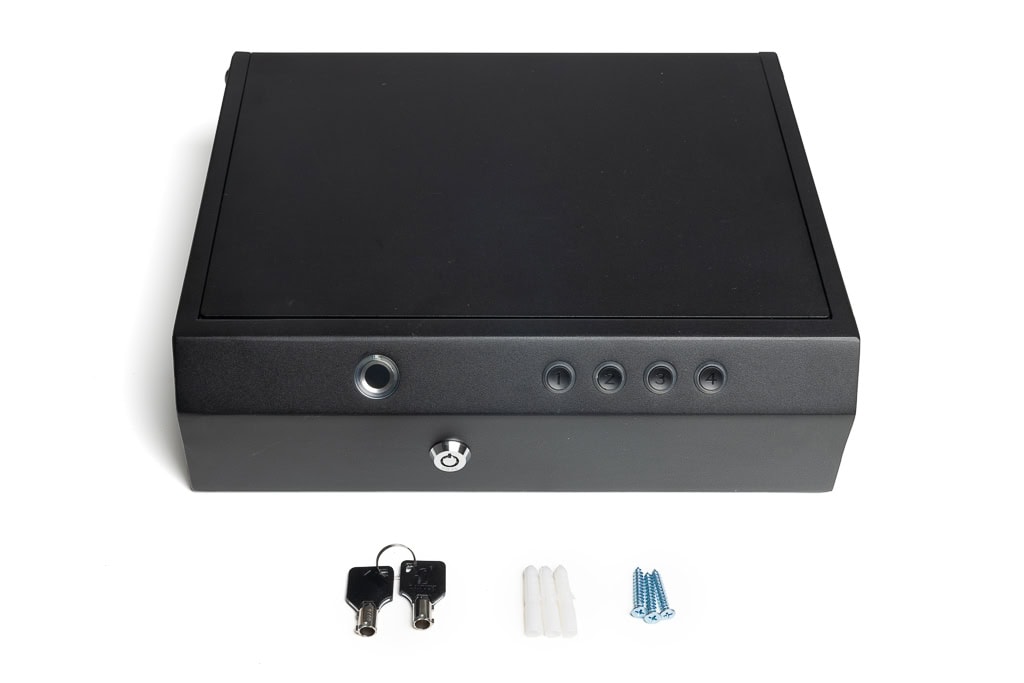 Installazione con doppia sicurezza: per stare tranquilli, la nostra cassetta di sicurezza per pistole e oggetti di valore ha 3 fori per le viti, che sono in dotazione. Basta fissare la cassaforte a qualsiasi oggetto fisso per avere una maggiore protezione contro i furti. Il montaggio è semplice e veloce.