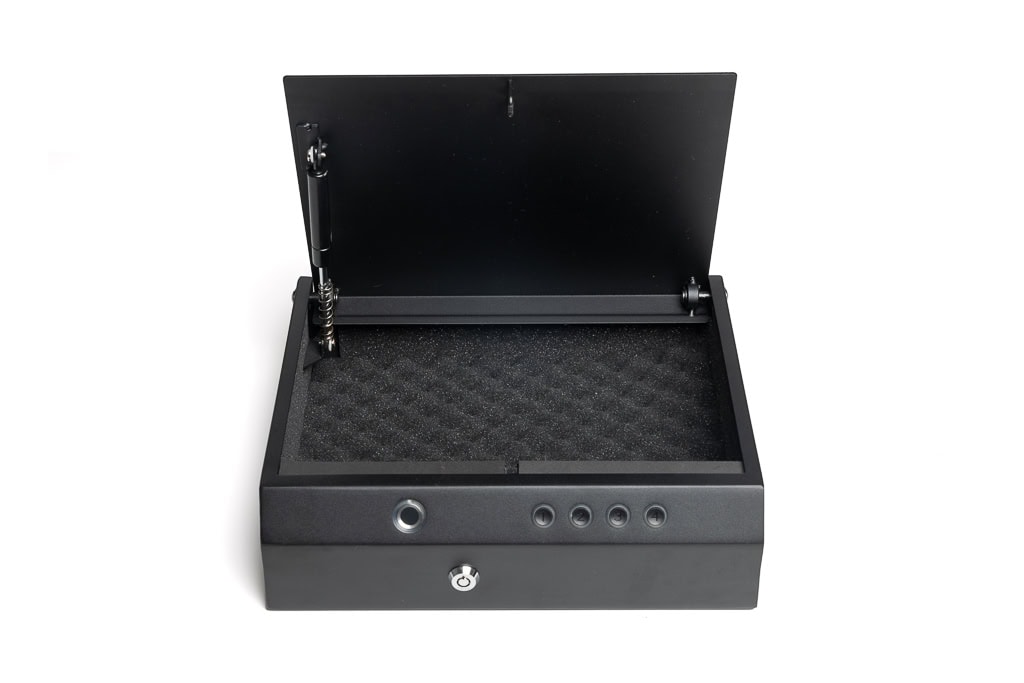 Dimensioni compatte con ampio spazio contenitivo: nonostante il suo design compatto, la nostra valigetta per armi offre spazio sufficiente per due pistole, oggetti personali di valore o documenti importanti. La cassetta di sicurezza funziona con 4 batterie AA/1,5 V. La cassetta è dotata di un indicatore di batteria scarica.