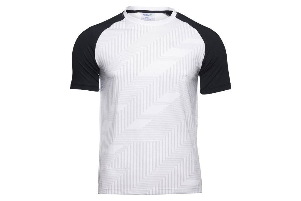 Dieses Sportshirt aus 100 % Polyester bietet Elastizität, schnelltrocknende Eigenschaften und hohen Tragekomfort. Das moderne Schwarz-Weiß-Design sorgt für einen stylischen Look, während der reflektierenden Streifen auf dem Rücken die Sichtbarkeit bei schlechten Lichtverhältnissen erhöht. Perfekt für Sport, Laufen und Outdoor-Aktivitäten.